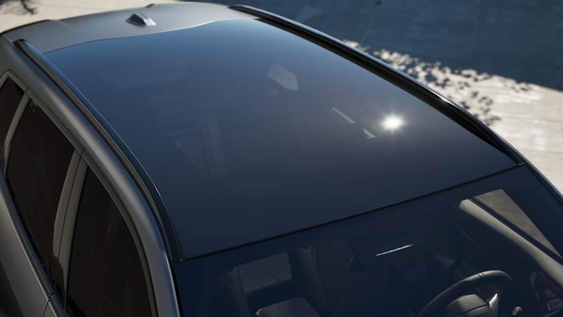 This is how the optional tinted panoramic glass roof merges into the windscreen. It is around 1.70 metres long and the glass is extremely sturdy.