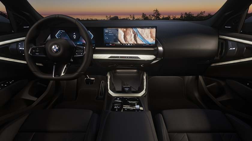 The interior of the BMW X3 has a clean, uncluttered look with sustainably premium and inviting detailing. Recycled polyester or vegan leather upholstery exudes a contemporary ambience. Back-lit trims or silver bronze accent features lend the vehicle sophistication. The front area wraps around the driver and front passenger in a powerful gesture. In the rear, there is plenty of room for up to three people.