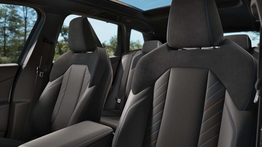 The front sport seats support the body and are perfectly moulded to its shape. With a wealth of settings, they guarantee an intensive driving experience.
